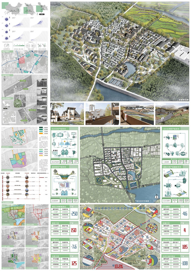 中国矿业大学建筑系本科毕业生付晶峰与宋明杰的本科毕业设计作品《共创·共享·共生——碳中和目标下的产能社区》荣获本次竞赛绿点提名奖,指导教师为中国矿业大学吉祥坊 姚刚副教授。付晶峰等以“碳中和”为社区治理目标,旨在将可持续理念、低碳理念和产能理念融入设计,在解决零能耗建筑技术问题的同时,提高对可再生能源、高性能建筑及低碳生活方式的理解,实现规划设计范围内的产能目标。