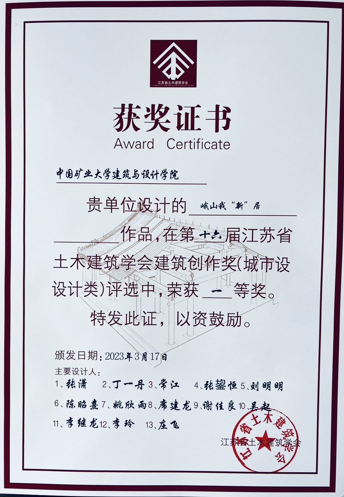 3月17日,江苏省土木建筑学会公布了第十六届“建筑创作奖”获奖名单,中国矿业大学吉祥坊 在城市设计类和建筑设计类项目中共获一等奖2项、二等奖2项、三等奖7项。