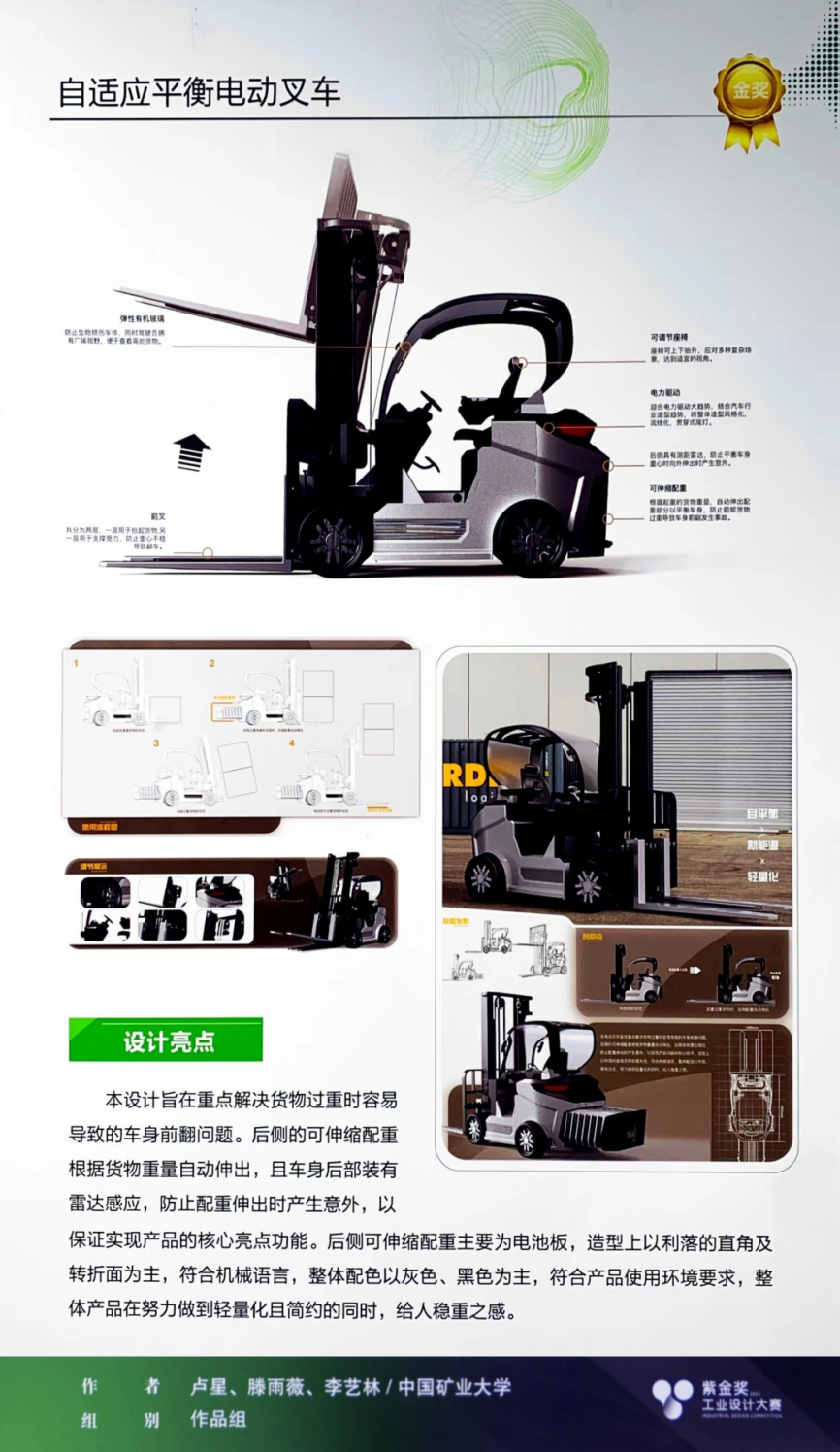 “紫金奖·工业设计大赛”金奖作品《自适应平衡电动叉车》