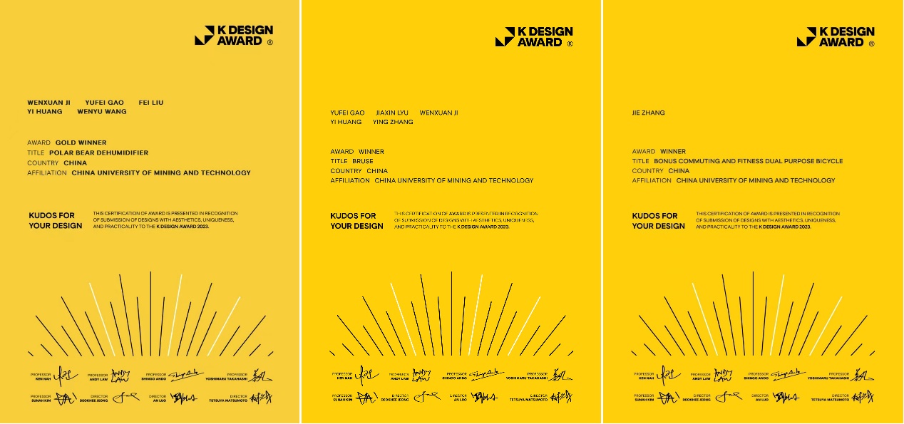近日,韩国“2023 K-Design Award”设计奖获奖作品揭晓。由吉祥坊 工业设计系朱兆华老师指导,研究生姬文轩等完成的“Polar Bear Dehumidifier”(家用除湿剂)设计作品获得“Gold Winner”奖项、研究生高郁菲等完成的“Title Bruse”(户外擦伤救急棒)设计作品获得“Winner”奖项;由姚君教授指导,研究生张杰完成的“BONUS”(通勤健身双单车)设计作品获得“Winner“奖项。