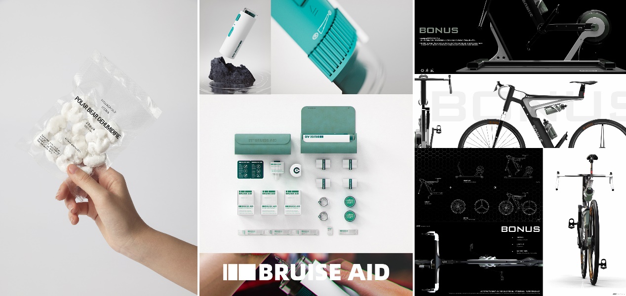 以上三个获奖作品,其中“Polar Bear Dehumidifier”通过将动物保护的概念与除湿剂日常用品相结合,旨在提醒人们对动物和环境的保护。“Title Bruse”是一款整合消毒水、消毒喷雾、绷带、创可贴、抗生素等元素的户外擦伤护理救急棒,旨在优化护理、救急的流程。“BONUS”是一款通勤健身双单车,该车采用轴传动快拆组合的方式整合公路车与动感单车,旨在促进可持续出行和健康生活方式的融合。