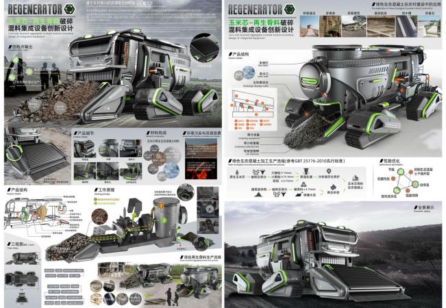 “装备中国”2023高端装备创新设计大赛在我国装备设计制造领域具有较高的行业认知度和广泛的社会参与度,是一项高水平、高规格的创新设计品牌活动。我校获奖作品“再生骨料破碎混料集成设备”基于乡村基础设施建设,为解决拆迁征地遗留的废弃混凝土和农村玉米芯焚烧造成的环境污染、资源浪费等问题,设计出模块化再生骨料工业集成设备,利用建筑废料以及玉米芯等材料制成新型再生骨料,定制化生产适合农村建设的地砖、墙体等基建材料。该设计贯彻了绿色可持续发展宗旨,提高了乡村基础设施建设效率。