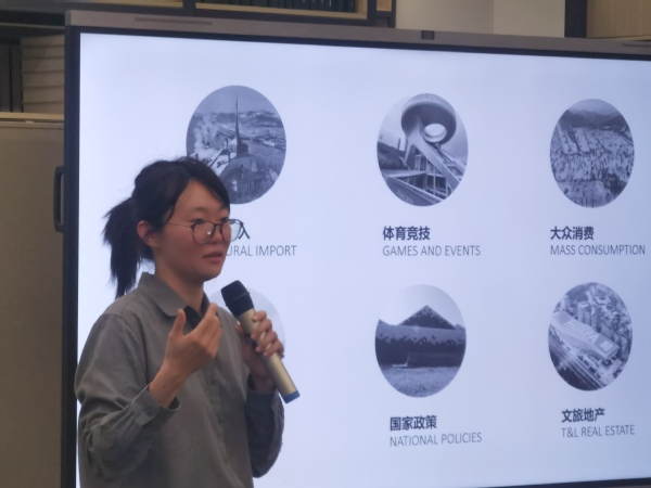 陆宪结合中国滑雪场的主题,从文化输入、体育竞技、大众消费、社会身份、国家政策以及文旅地产等六个方面进行分析,她通过对哈尔滨玉泉滑雪场、崇礼多乐美地滑雪场、黑龙江省体育局亚布力滑雪场等9个中国国内较有代表性的滑雪场项目进行分析研究,总结了滑雪场在中国衍生出的本土特征,即异托邦式的存在,其特征表现为既存在于各种文化之中,但是尚处在融合阶段且与乌托邦相区别的特殊存在。陆宪的讲座生动地展示了由不同地域特征、推动建设因素影响下的滑雪场场地特征和建筑风格的差异,拓展了大家对滑雪场演进历程的认识。