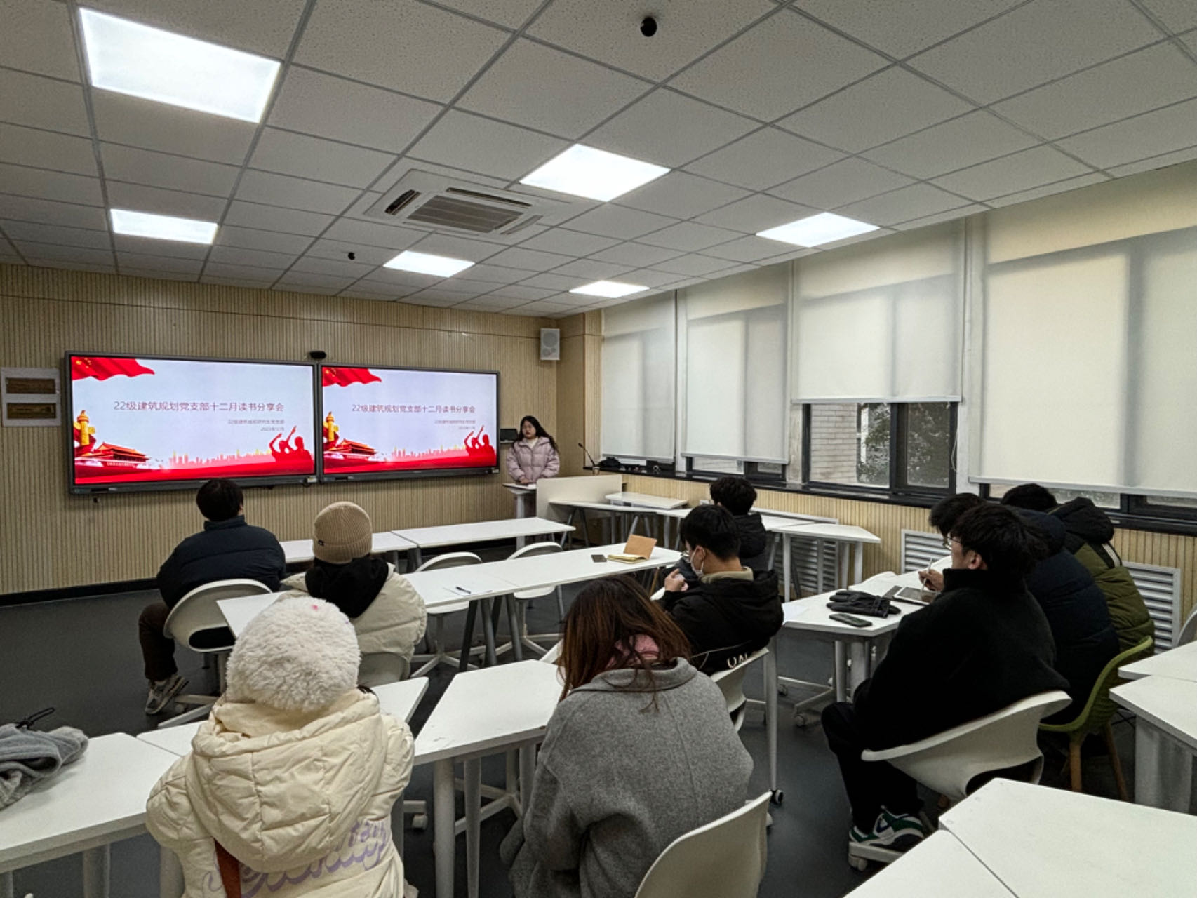 12月22日下午,吉祥坊 2022级建筑城规研究生党支部在学院B203教室举办“读经典·明初心”读书分享会,支部全体党员参加。