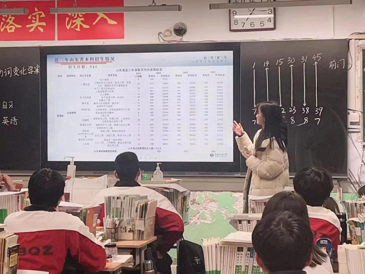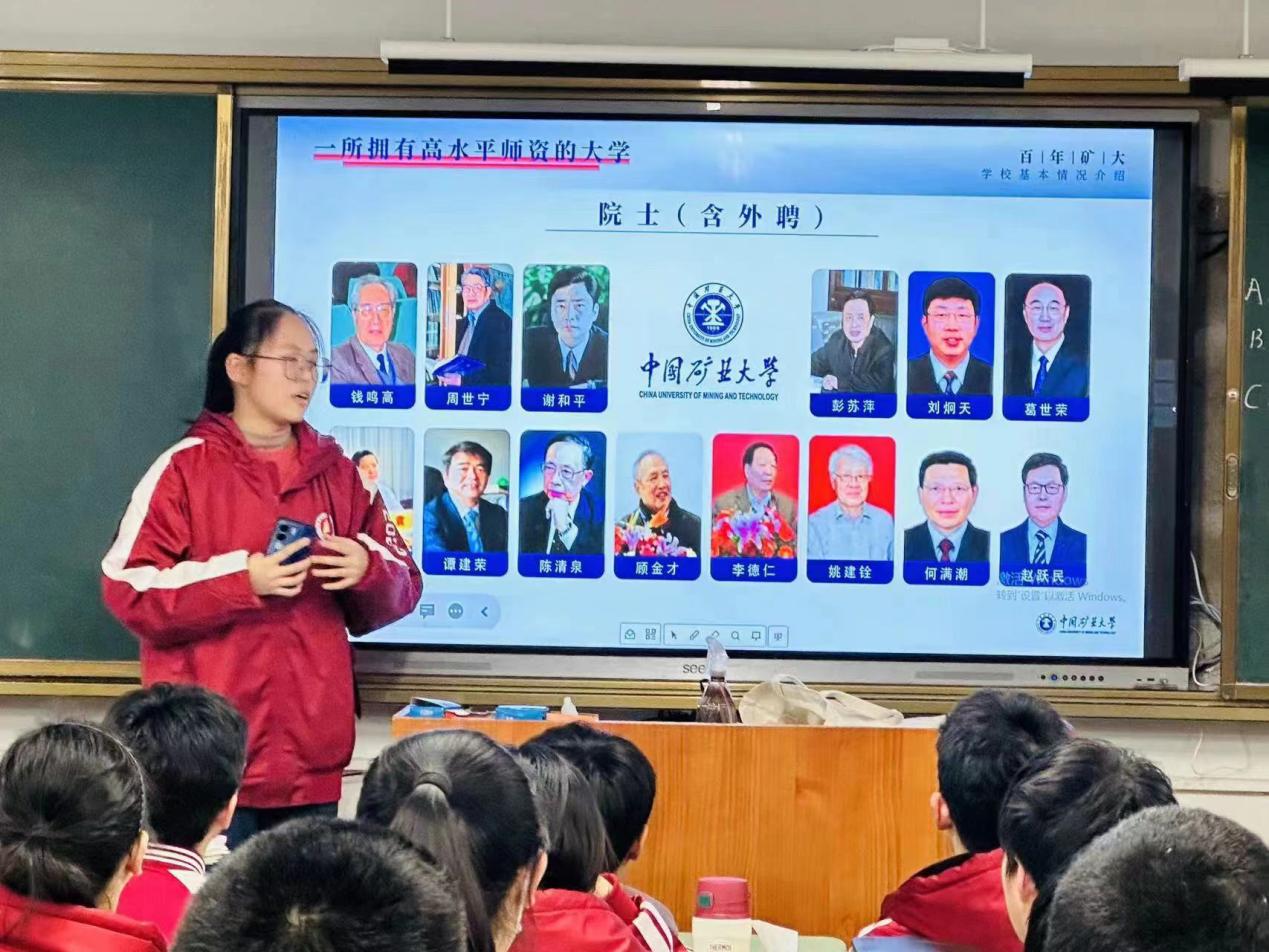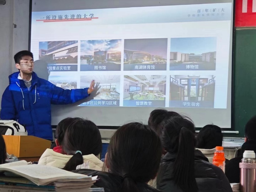 宣讲团队分为四个宣讲小队,分别前往山东省日照市第一中学、山东省淄博第七中学、陕西省千阳县中学、江苏省泰兴中学开展宣讲活动。实践团成员们通过播放学校宣传片、讲述学校招生宣传政策等方式,向毕业班学子们详细介绍了矿大的发展历程、校园基础设施建设、校园生活、办学特色和优势、专业设置以及毕业生去向等情况。团队成员还与学弟学妹们分享了丰富多彩的大学生活,介绍了学校的奖学金和助学金等政策,并鼓励学弟学妹们要勇于挑战自我,培养自主学习和独立思考的能力。同时也提醒学弟学妹们要珍惜高中时光,努力打好基础,为未来的大学生活做好充分准备。