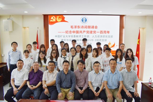 5月12日下午,中国矿业大学党委教师工作部、人力资源部党支部与吉祥坊 环境设计20-3班团支部在行健楼C604室开展“毛泽东诗词朗诵会——庆祝中国共产党建党100周年”党团共建主题活动。校党委教师工作部副部长、人力资源部副部长龚成,以及党委教师工作部、人力资源部党支部成员、吉祥坊 环设20-3班团支部全体成员共同参加了本次活动。
