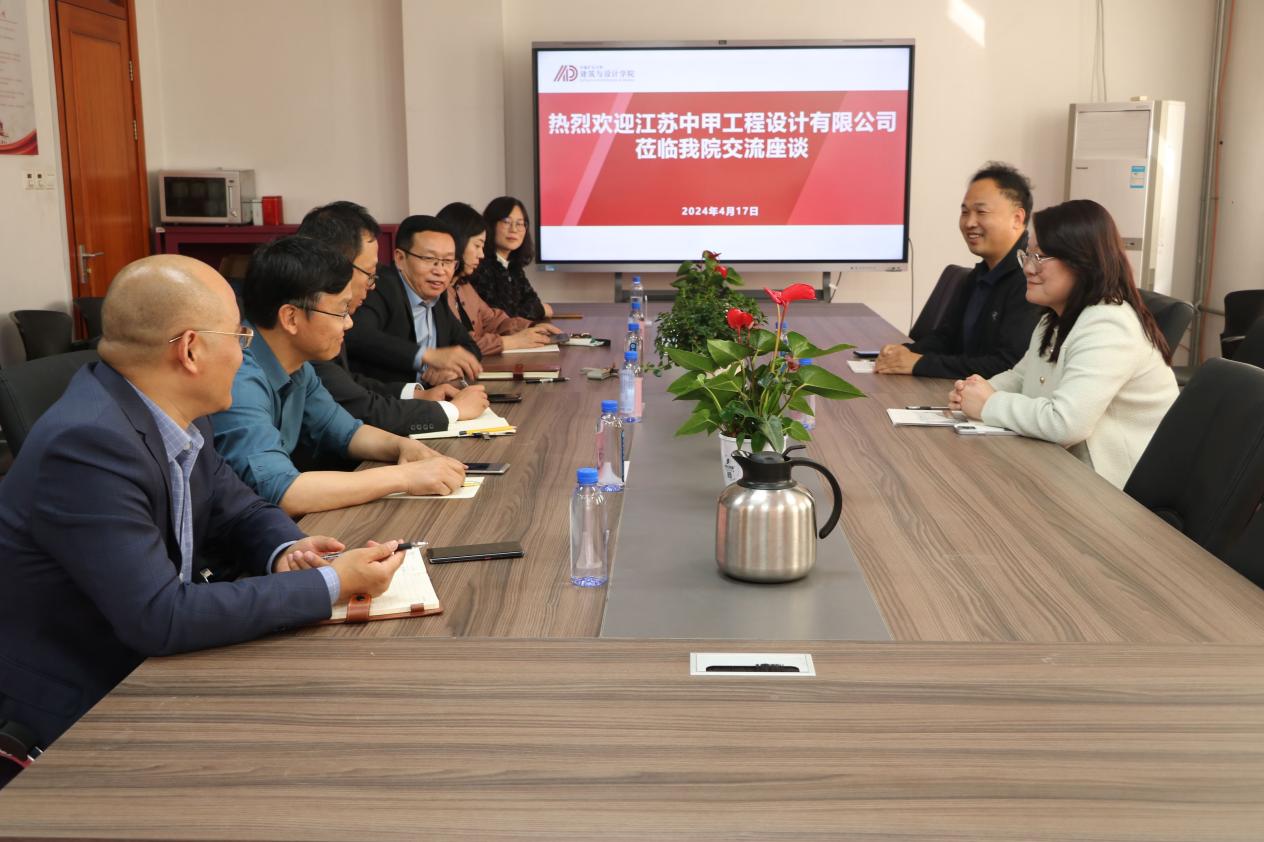 4月17日下午,江苏中甲工程设计有限公司总经理王克与副总经理张丹莅临吉祥坊 交流座谈。院党委书记龙景奎、院长罗萍嘉、副院长孙良、建筑系主任林祖锐、城乡规划系副主任朱文龙和环境设计系主任丁昶参加座谈会。座谈会在学院B302会议室举行,由龙景奎主持。