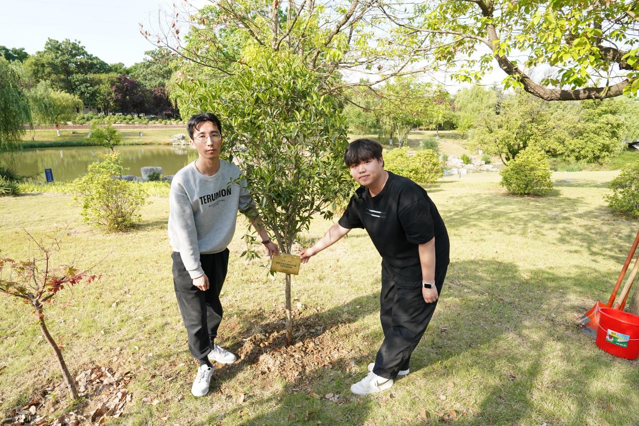 植树现场,师生一起挥锹填土、夯实土层、提水浇灌,共同种下了纪念毕业的校友树。随后,毕业生代表为校友树悬挂标识铭牌。许梓楠副书记和冀朋元副院长向毕业生代表表达了美好祝愿,希望毕业生们继续奋发努力、茁壮成长,成为祖国的栋梁!