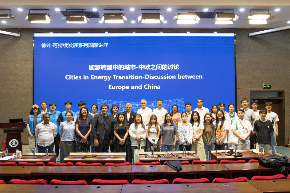 Müller院士致欢迎辞并在报告结束后进行总结。他欢迎Roberto教授来到中国矿业大学开展学术讲座,他提到,在快速城镇化进程中,区域与城市发展都面临着大规模建设与资源环境的矛盾,如何运用现代数字技术致力于应对人类自身生存与发展空间所面临的复杂问题,对城乡规划从业者提出了新的要求。他希望研究者们能够跳出思维的框架和束缚,勇于创新,追寻跨专业的交流与合作。他提到,Roberto教授的报告关注能源转型中的城市,他的研究将会给大家深刻的思考和启发。