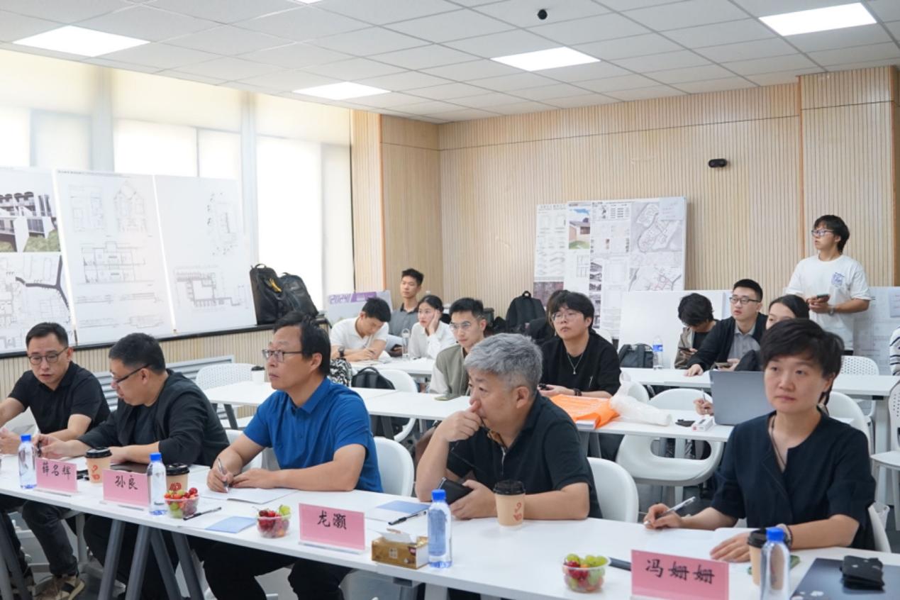 开幕式结束后,终期答辩分两组正式展开,答辩专家认真听取了各团队汇报,对同学们的最终成果做出详细点评。答辩过程中,老师们着重关注了场地策划、新旧建筑之间的关系等内容,与同学们就场地规划、新旧结构衔接、结构与空间匹配性、历史文脉保留等问题进行了深入的探讨。