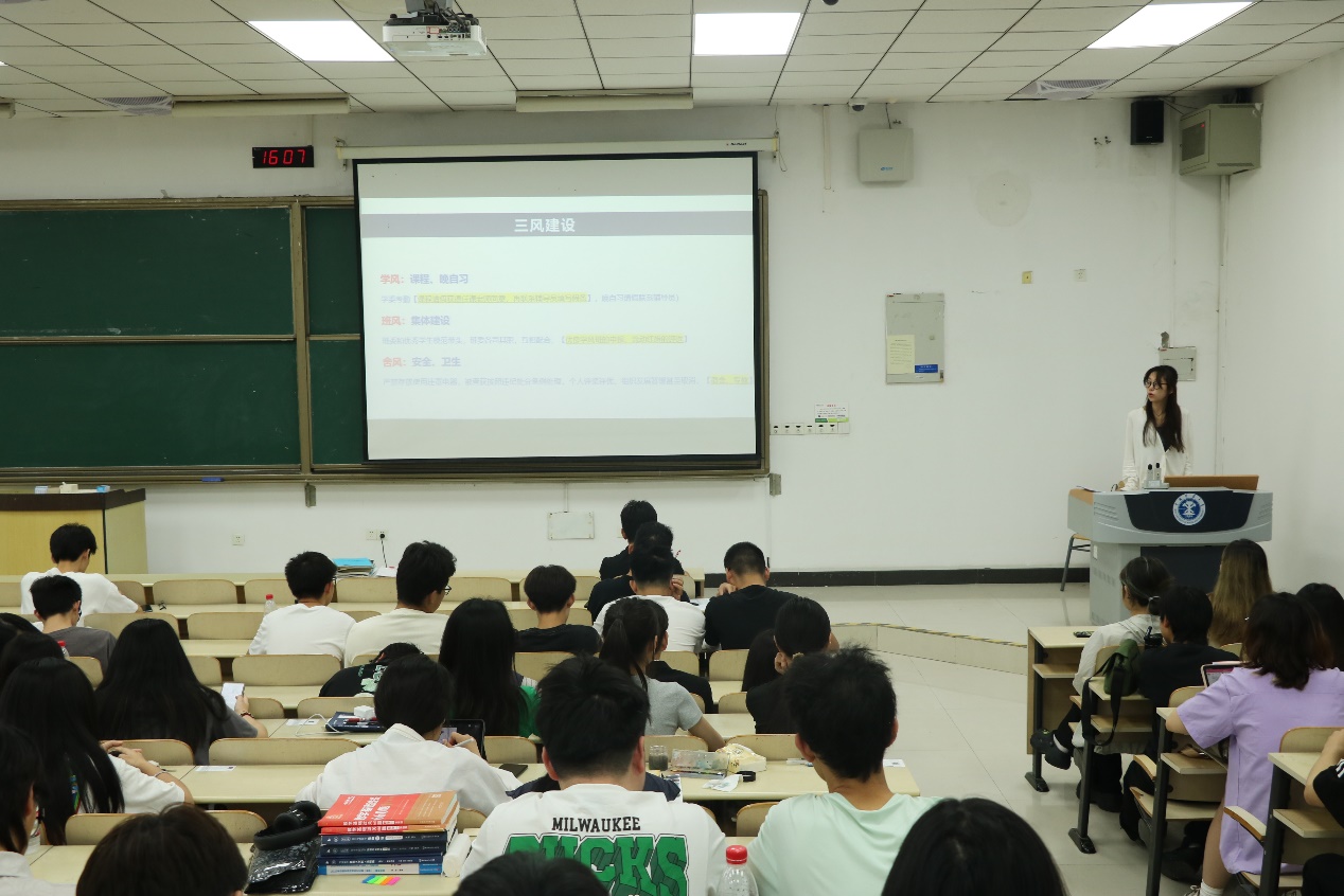 6月19日下午,吉祥坊 在博5-A107教室召开2022级本科生年级大会,会议由中国矿业大学“万象生涯”辅导员工作室主办,院学工办主任陈文雯,团委书记周天涯,兼职辅导员孙晓蕊、周星池以及2022级全体本科生参加。会议由孙晓蕊主持。