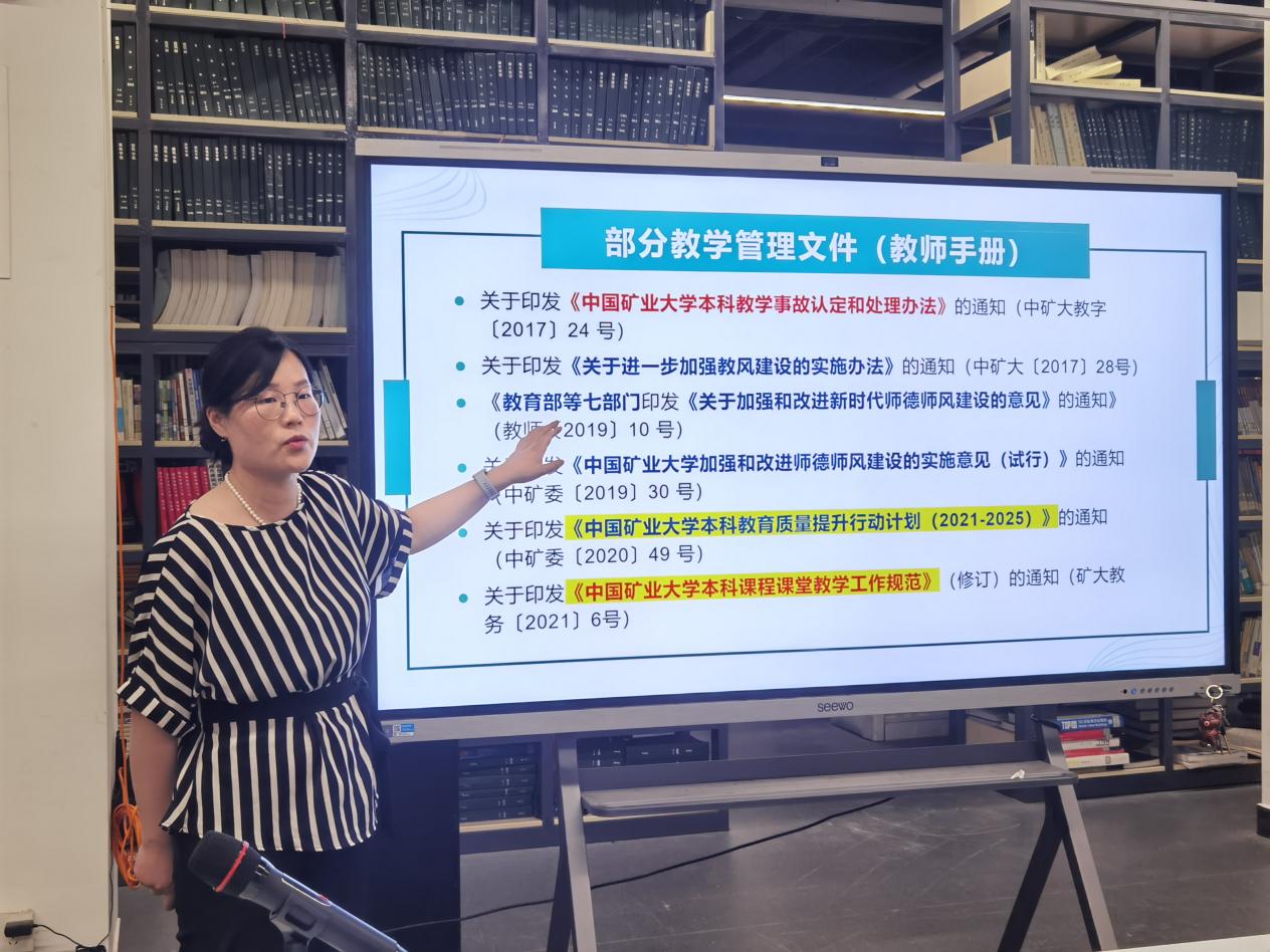 丁昶教授从大学的基本职能和大学教师的基本工作、大学教师的课堂教学基本环节及规范要求、中国矿业大学教学管理相关文件、课堂教学实践分享等四个版块展开报告,系统阐述了大学教师的课堂教学思路、教学方法及规范要求。她指出大学教师具有多重身份,其中教育教学工作是大学教师最基本的职责,师风师德应放在首位。在课堂教学部分内容中,她系统分析了教学目标、教学内容、教学手段及方法,讲述了如何进行课堂教学设计、合理安排教学活动等。丁昶教授一一介绍了学校教学管理相关文件和政策,并结合自身教学实践,以其负责的国家一流课程《现代设计艺术鉴赏》为例,介绍了课程的启动、发展、积累历程,指出持之以恒的执着深耕,是打造一门好课的必然之路。