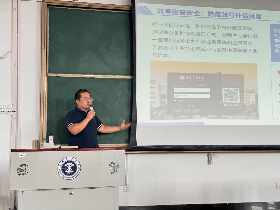 在网络安全教育讲座上,苏昕老师从电影《孤注一掷》说起,围绕“账户密码安全、邮件安全、终端安全”三大板块展开陈述,他强调,网络安全绝非小事一桩,而是关乎每位同学个人信息保护、学习生活秩序乃至社会稳定的大事。苏老师鼓励每一位在座的新生都要树立起强烈的自我保护意识,主动承担起网络安全的第一道防线责任,不仅要严格遵守学校制定的网络安全管理规定,更要积极学习并掌握必要的应对技能,以便在遭遇网络威胁时能够迅速有效地采取措施,保护自身免受侵害。