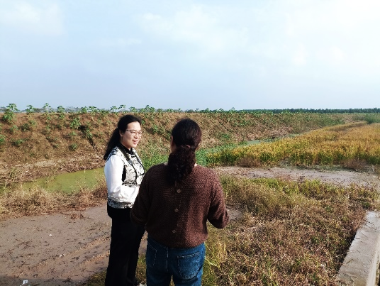 随后,师生团队前往下坝村、黄尖镇、斗龙港镇及亭湖区金滩海涂开发有限责任公司管理的养殖塘区域进行考察,观察了湿地的植被分布、鸟类栖息地以及当地社区生产生活等情况。