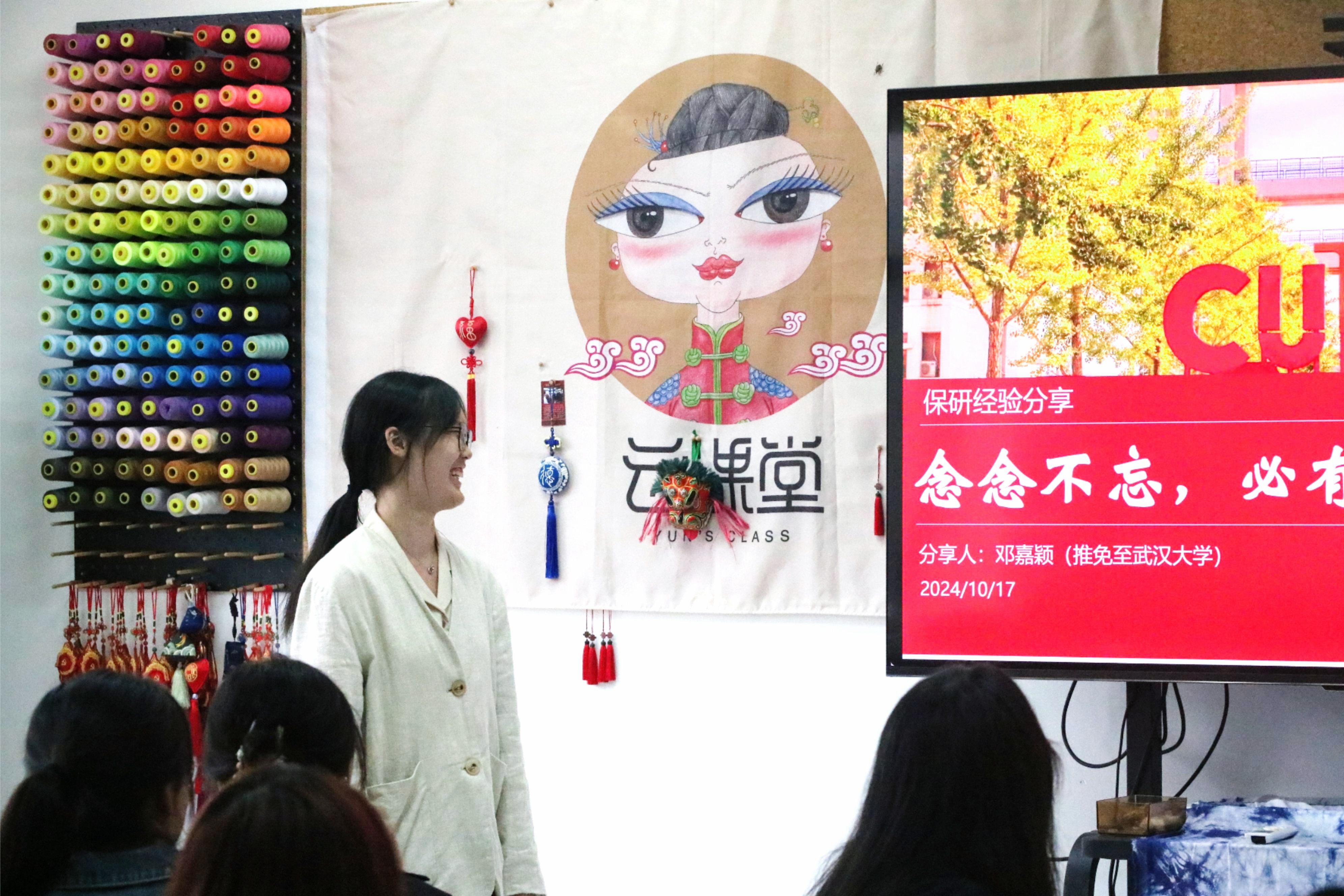 10月17日下午,吉祥坊 环境设计24—1班在江苏省中华优秀传统文化传承基地开展了“薪火相传 ‘研’途有我”保研经验干货分享会。本次活动由班主任孙亚云教授主持,邀请了吉祥坊 环境设计专业的吴妍萱同学和材料与物理学院新能源材料与器件专业的邓嘉颖同学进行经验分享。