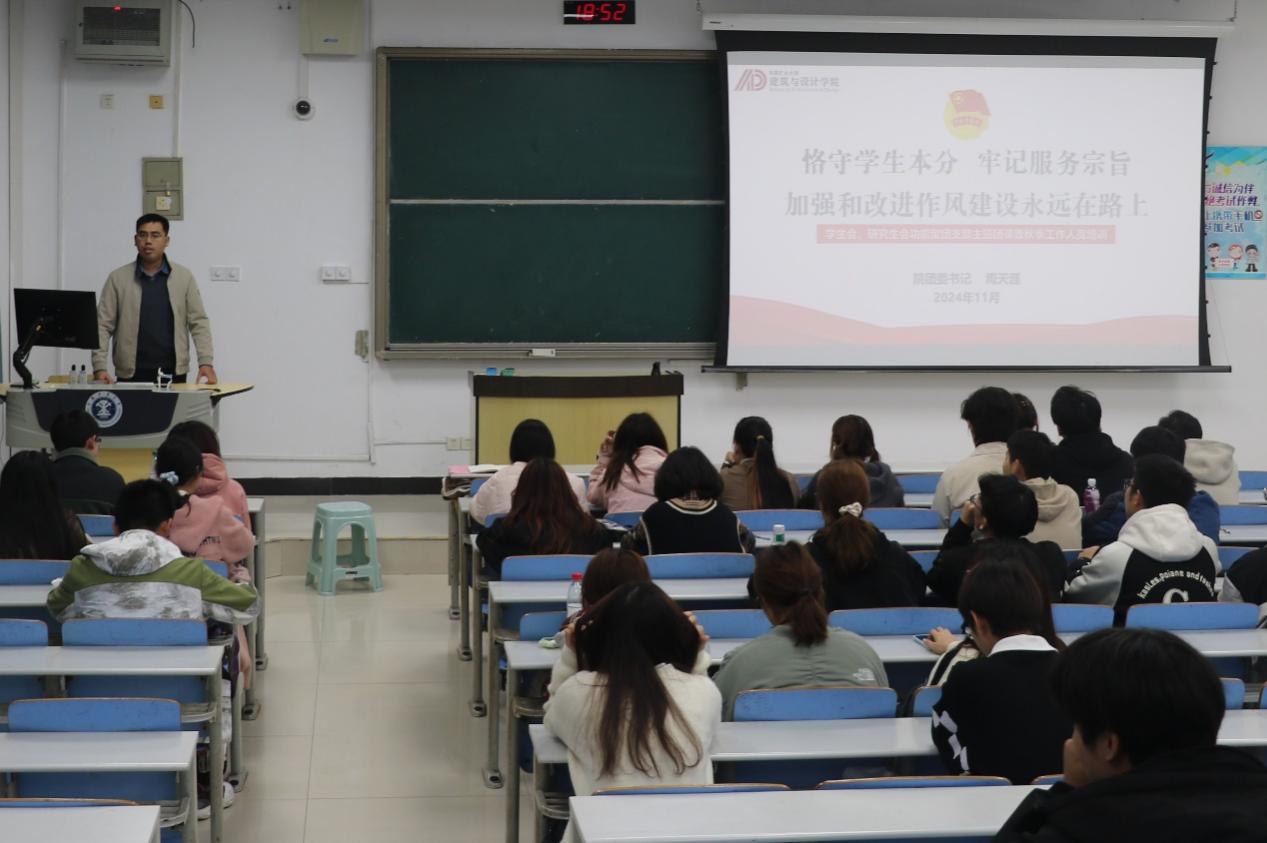 大会结束后,院团委书记周天涯讲授题为《恪守学生本分,牢记服务宗旨,加强和改进学生会、研究生会作风建设永远在路上》的主题团课。课程围绕学联学生会的历史背景、从严治会要求下的作风建设需求及近年案例警示三个方面,深入阐述了学生会、研究生会持续改革创新、转变作风的紧迫性和重要性,号召全体成员恪守学生身份,忠实履行服务学生的根本职责,认真践行学生会、研究生会全心全意为同学服务的宗旨使命。