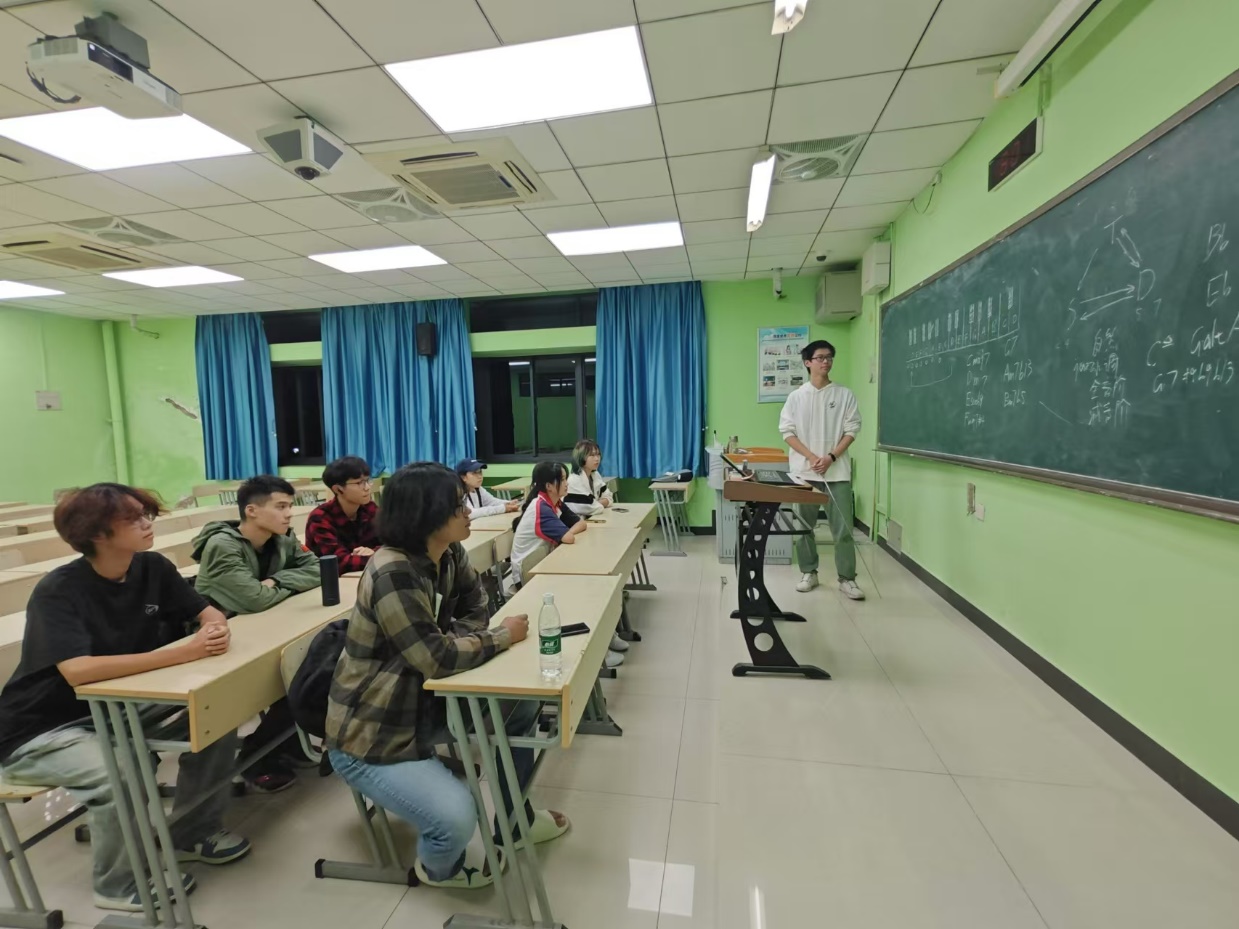 10月16日下午,由思旗音乐社承办的首场夜校活动在博1楼C308教室拉开帷幕。音乐社副社长张俸源首先向大家介绍了乐器的大调和小调、和声的回响等乐理知识,并在讲解过程中结合电子琴演奏,向大家生动地解释了音乐相关理论知识。在交流环节,音乐社的负责人细致解答了同学们提出的问题。