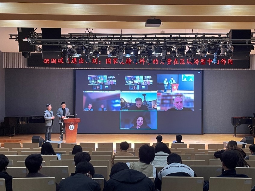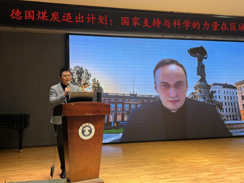 Anderas Otto博士首先作报告,他以《德国煤炭退出计划:国家支持与科学的力量在区域转型中的作用》为题,在报告中指出,德国作为资源型国家,致力于在2038年前逐步停止使用煤炭发电,目前这一转型过程已在进行中,并在三个受产业影响的地区带来了经济变革。当地政府给予资金及政策支持这一结构性转变,科学家们在环境保护、工人培训和出行服务优化等方面提供了技术支持。Anderas Otto博士的报告还涵盖了受影响矿区在结构政策方法和空间发展方面的内容,以及研究机构对区域转型所期望达到的效果。最后,他结合自己所领导的德国天体物理研究中心的科研情况,为大家简述了德国政府如何通过科学研究机构的设立与发展,帮助矿区转型,走向可持续发展之路。