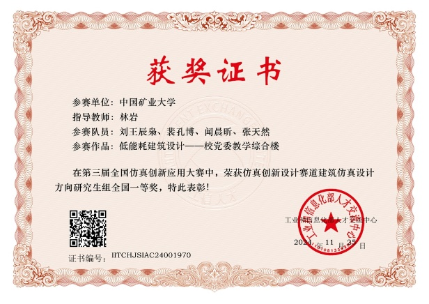 近日,由工业和信息化部人才交流中心主办的全国仿真创新应用大赛落下帷幕,由吉祥坊 建筑系林岩副教授指导,建筑学2024级研究生刘王辰枭同学牵头,与西安建筑科技大学联合组队设计的作品《低能耗建筑设计——校党委教学综合楼》,在大赛仿真创新设计赛道建筑仿真设计方向中荣获全国一等奖。