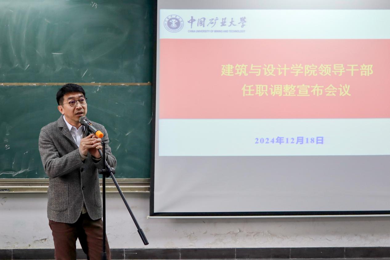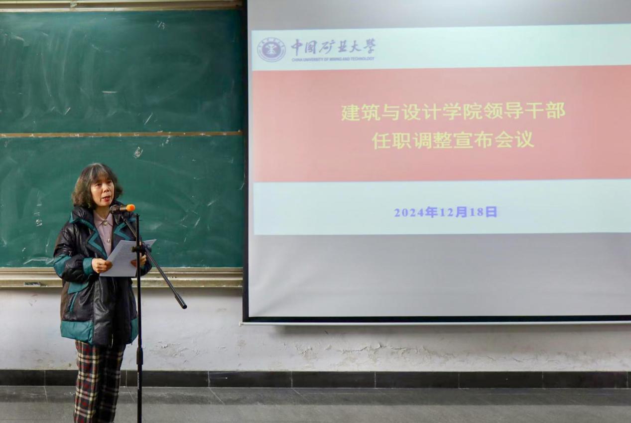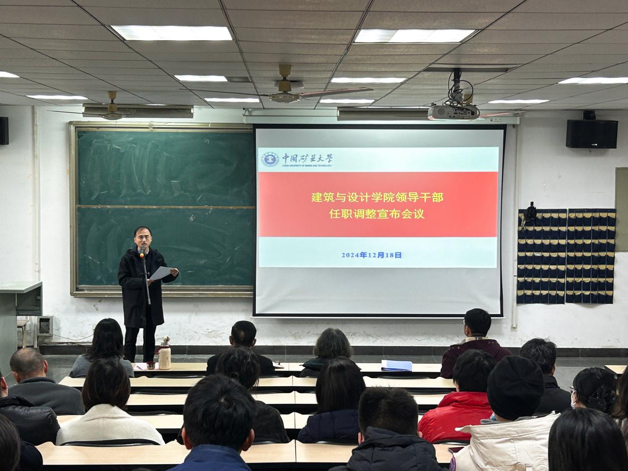 12月18日上午,吉祥坊 在A310召开领导干部任职调整宣布会议。中国矿业大学副校长叶继红,校党委组织部部长祁慧勇、学院领导班子成员及全体教职工参加,会议由学院新任党委书记罗萍嘉主持。