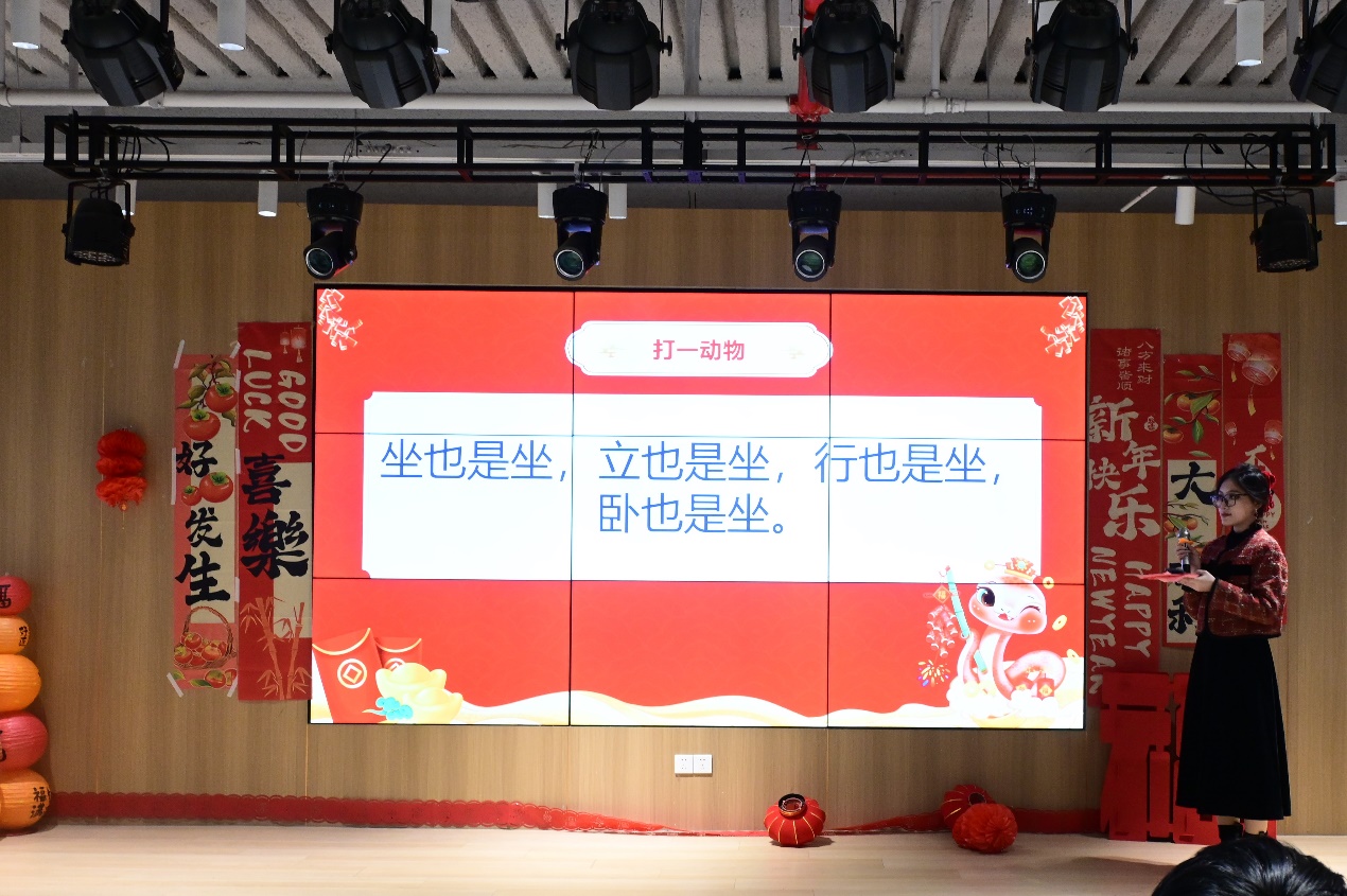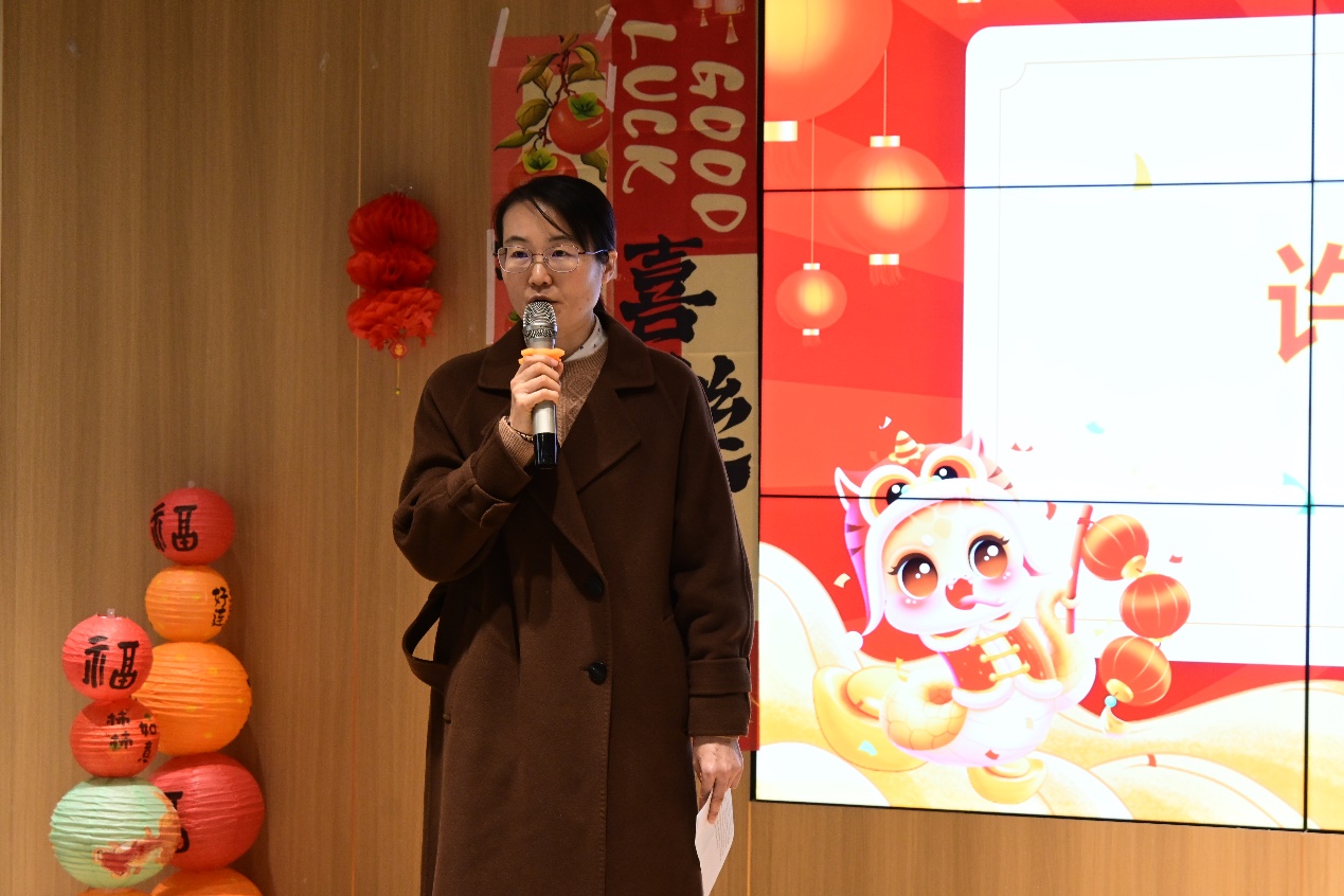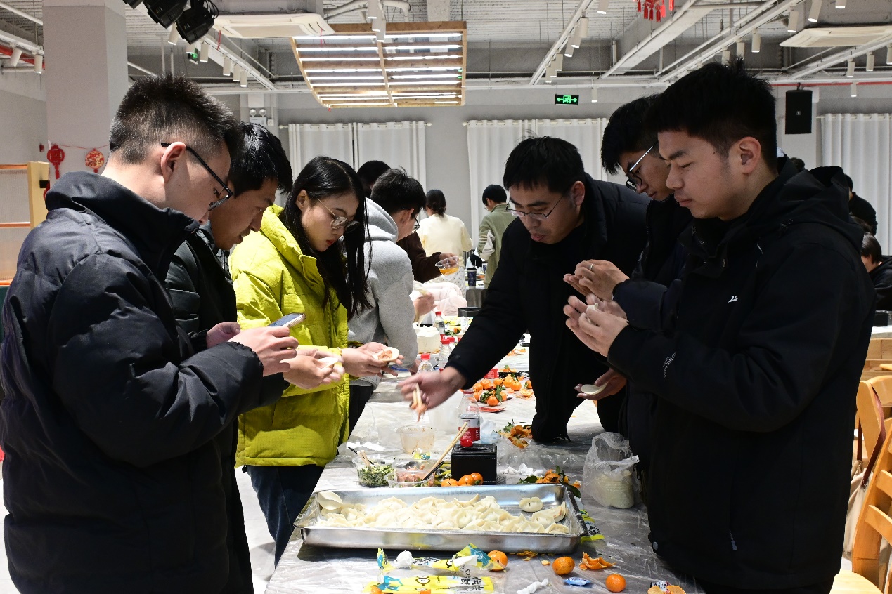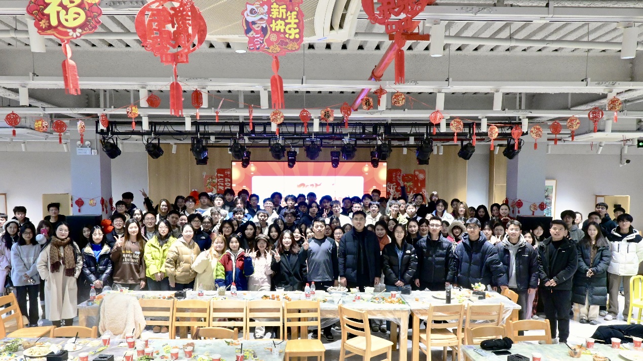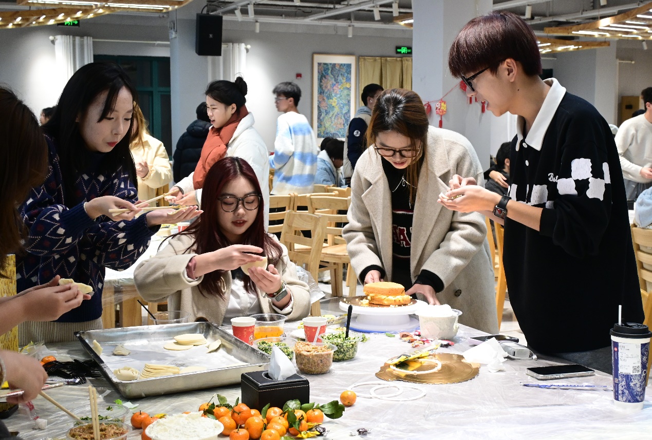 在之后的晚会环节,《拜新年》《小美满》等歌曲传递出欢快、喜庆的氛围,表达了对新年的美好祝愿和喜悦之情。师生共同参与了包饺子、做蛋糕、猜谜语、发红包等丰富多彩的活动,现场美食香气四溢,氛围轻松愉悦。最后,在场师生合影留念,团拜会在欢声笑语中落下帷幕。