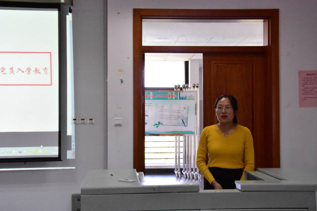 会议伊始,学工办主任孟子浩老师进行发言。孟老师主要从为什么加入中国共产党、当前的国际形势和为什么拥护中国共产党三个方面进行了阐述。他指出入党是个人的信仰选择,所有学生党员都要有党员意识,要做共产党的窗户,要传承共产党的优良作风。接着,孟老师结合具体实例向大家分析了世界形势。希望大家在今后的学习和生活中要有明确方向并注意自己的行动和言语,为国家民族和党的发展贡献出自己的力量。针对“为什么要拥护中国共产党”这一问题,孟子浩老师用“只有共产党才能救中国”这一简短有力的话语作了回答。孟子浩老师希望大家能认真学习十九大精神,学会亮身份,做合格党员,主动承担责任,发挥正能量。兼职组织员龚雨佳和党员工作站站长汪洋分别就自己分管的工作对研究生党员进行了教育。