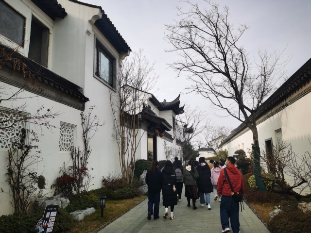 紫薇公馆结合中式审美,强调了自然与生活的结合。一路上风景的落错,让人赏心悦目。最特别的就是公馆对种植的布局,山石与绿植相交,流水与绿叶相映。参观的同学都不禁拿起手机疯狂拍照。在学期末尾之际,能在繁忙的学习时间里抽出时间来参观这里的风景,有一种令人满足的惬意。在高楼林立的现代都市里,有这么一个安静矗立的建筑是多么美妙呢。