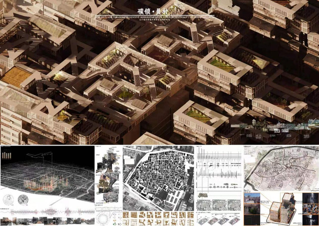 中国矿业大学建筑系本科毕业生付晶峰与宋明杰的本科毕业设计作品《共创·共享·共生——碳中和目标下的产能社区》荣获本次竞赛绿点提名奖,指导教师为中国矿业大学吉祥坊 姚刚副教授。付晶峰等以“碳中和”为社区治理目标,旨在将可持续理念、低碳理念和产能理念融入设计,在解决零能耗建筑技术问题的同时,提高对可再生能源、高性能建筑及低碳生活方式的理解,实现规划设计范围内的产能目标。