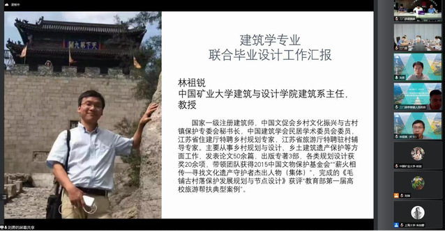 6月18日上午,“山海三门·未来乡村”2022长三角高校乡村振兴联合毕业设计闭幕仪式暨高校建筑规划教育论坛在线上举行,吉祥坊 建筑系与规划系的林祖锐、朱文龙、林岩、赵立元4位老师与14名17级建筑学本科生通过线上的方式参加了此次论坛。