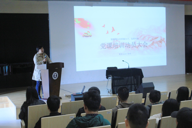 为了进一步加强学院党员队伍建设,提高新一届入党积极分子和发展对象的党性觉悟,10月26日下午1:00,吉祥坊 在学院楼报告厅召开了第五十二期党课动员大会。会议由组织员闫坤茹老师主持,院党委副书记范韶维出席了会议,设计学院全体第五十二期积极分子和发展对象参加了本次会议。