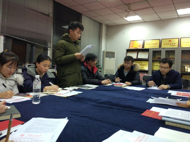 12月13日晚7:00,吉祥坊 14级工业设计学生党支部在学院楼B302召开接收预备党员会议,讨论郭冰、刘鹏、施佳蓉、王康4名同志的接收问题,会议由党支部书记韩斌同志主持,14级辅导员、院团委书记孟子浩老师以及14级工业设计学生党支部成员参加了此次会议。