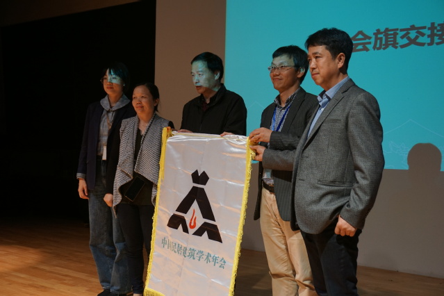 活动结束后,本届中国民居建筑学术年会主办方代表中国矿业大学吉祥坊 林祖锐教授和常江教授,与下一届中国民居建筑学术年会承办方代表西南民族大学城市规划与建筑学院院长赵兵教授、系主任刘艳梅副教授和王赛兰博士进行会旗交接仪式。之后,下一届中国民居建筑学术年会承办单位代表赵兵教授介绍承办方案。赵兵教授介绍了西南民族大学的概况,表达了西南民族大学承办会议的强烈意愿,并通过视频展示了西南民族大学的历史沿革及发展现状,同时还汇报了对下一届中国民居建筑学术年会所做的准备及期望。系主任刘艳梅副教授介绍了建筑学专业的基本情况。