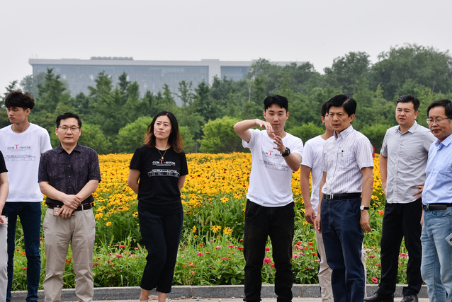 6月13日上午,由吉祥坊 、电气与动力工程学院、环境与测绘学院和力学与土木工程学院联合举办的“基于新农村建设的零能耗住宅跨专业联合毕业设计”团队答辩在我校东门花海举行,来自4个学院7个专业的同学分别进行了答辩。宋学锋校长出席了本次联合毕业设计的开幕式,并听取同学们的汇报。