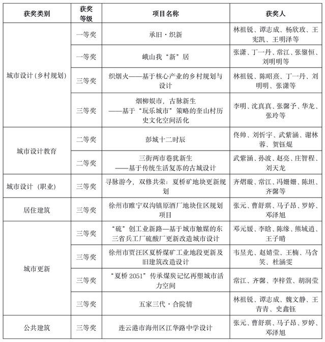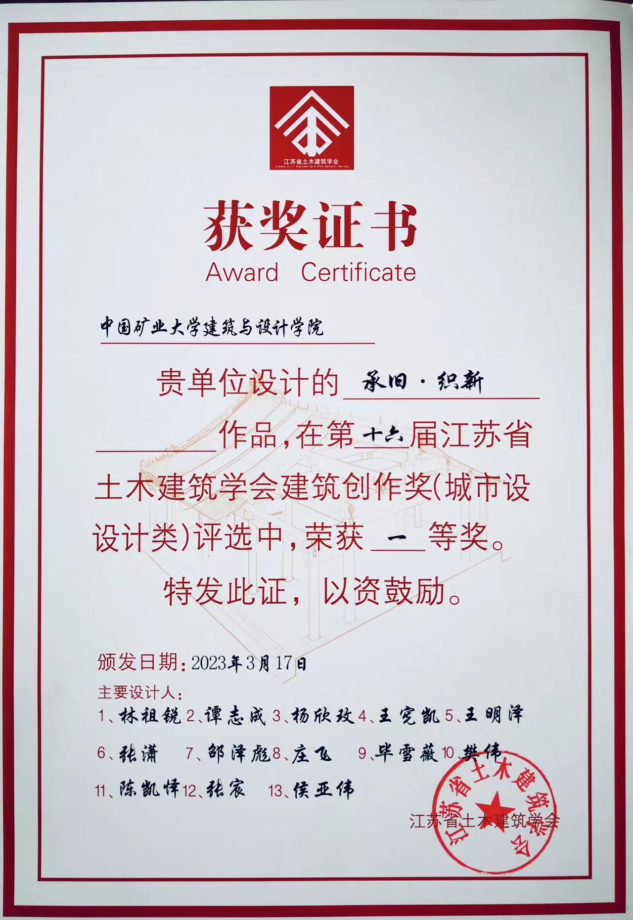3月17日,江苏省土木建筑学会公布了第十六届“建筑创作奖”获奖名单,中国矿业大学吉祥坊 在城市设计类和建筑设计类项目中共获一等奖2项、二等奖2项、三等奖7项。