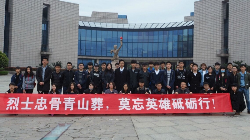 上午九点,厚德学社与其他社团成员在学校北门集合并进行了活动启动仪式。随后,所有同学乘车前往淮海战役纪念塔。到达淮塔后,团员代表王洁同学带领全体成员在纪念碑下庄严宣誓,誓词中“以我火热青春,建设锦绣中华”等词句振奋人心。接下来,由社团代表进行了纪念建团九十五周年的主题朗诵,并向淮海战役中牺牲的烈士敬献花圈。上午十一点,纪念仪式结束,学子们走进淮海战役展厅,参观了战争时期的军用物品和文史资料,重温革命战士的英雄事迹和感人情怀。