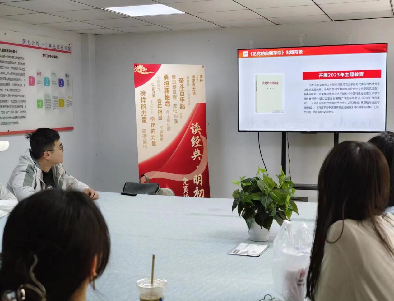 读书会上,许光达同学领学了《论党的自我革命》一书并分享了的读后感,他表示勇于自我革命,是我们党最鲜明的品格,是我们党最大的优势,这“两个最”的表述,深刻阐明了勇于自我革命之于我们党的重要性,深刻揭示了我们党的内在特质和制胜之道。读书分享会现场气氛融洽,同学们结合学习内容积极讨论,交流思想和认识。