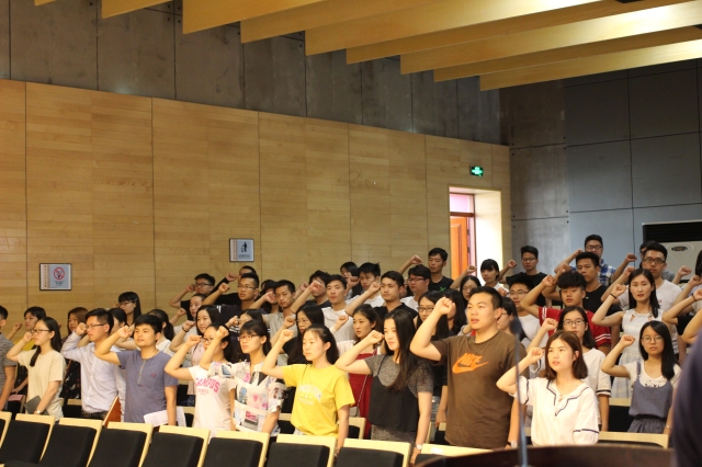 党课开始前,全体师生起立奏唱国歌,13级毕业生党员代表李昊灿带领全体党员进行宣誓。宣誓结束,范韶维副书记以不忘初心,砥砺前行为主题,为毕业生党员上了最后一次党课。
