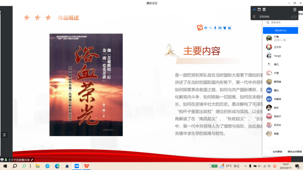6月15日晚,吉祥坊 举办第二十期“读经典·明初心”研究生党员读书分享会,本次读书分享会采用线上方式进行,21级工业设计研究生党支部全体党员参加,由党支部书记付萱主持。