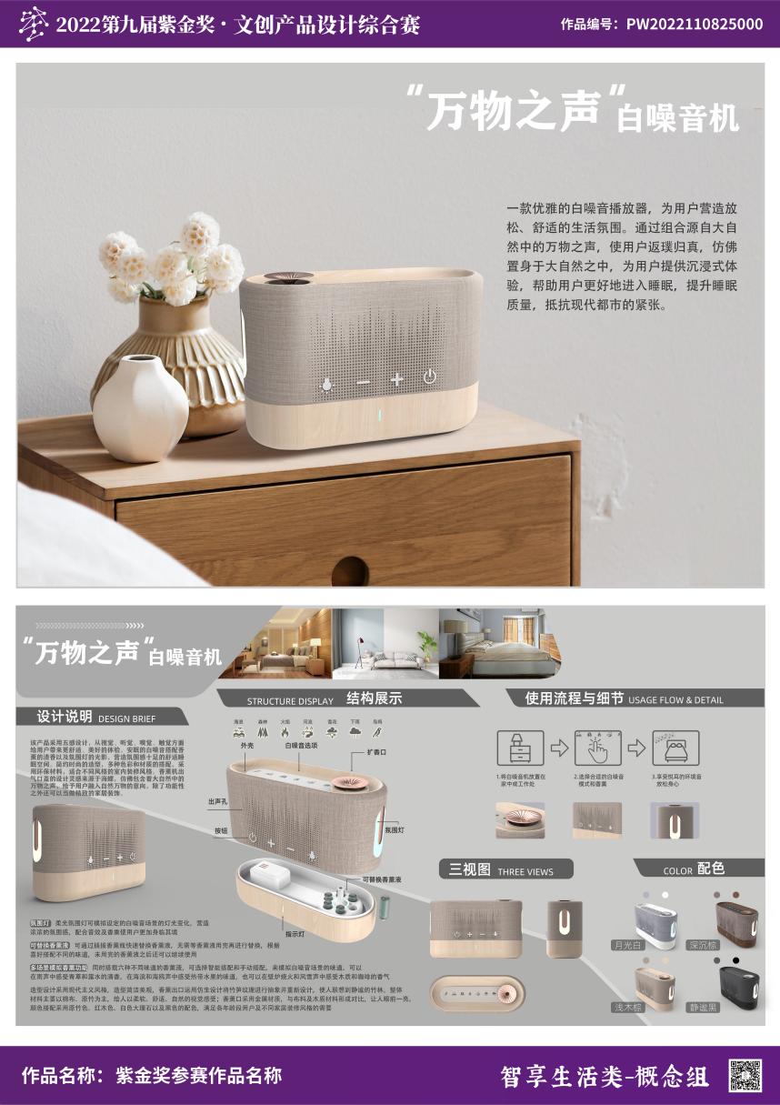 “紫金奖·文创产品设计大赛”银奖作品《“万物之声”智能白噪音机》