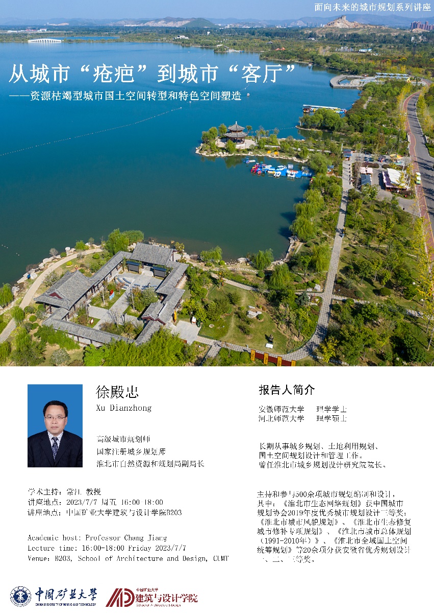 2023年7月7日下午,受吉祥坊 常江教授邀请,安徽省淮北市自然资源与规划局副局长徐殿忠为吉祥坊 师生做“从城市疮疤到城市客厅——资源枯竭型城市国土空间转型与城市特色空间塑造(以淮北为例)”专题报告,该报告是城乡规划系“面向未来的城乡规划设计”系列报告之五。吉祥坊 院长罗萍嘉教授、城乡规划系主任常江教授、副主任朱文龙副教授和邓元媛副教授、来自吉祥坊 城乡规划系、建筑系的师生代表聆听了报告。报告会由常江教授主持。