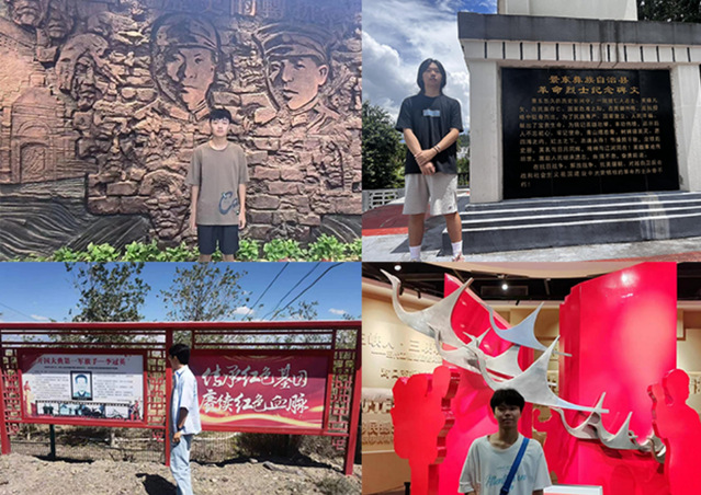 为理解和传承红色基因,“红色基因传承团”成员李龙、谭俊逸、孟尧、伍陈帅、向鋆、李硕琦、王鹤霖等7位同学在暑假期间分别参观各自家乡的红色教育基地。