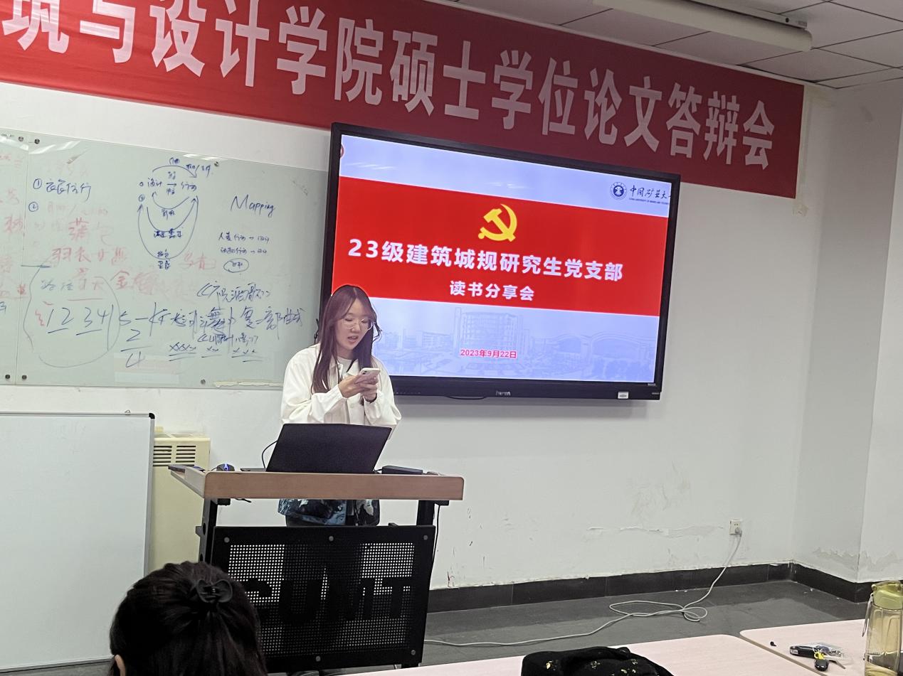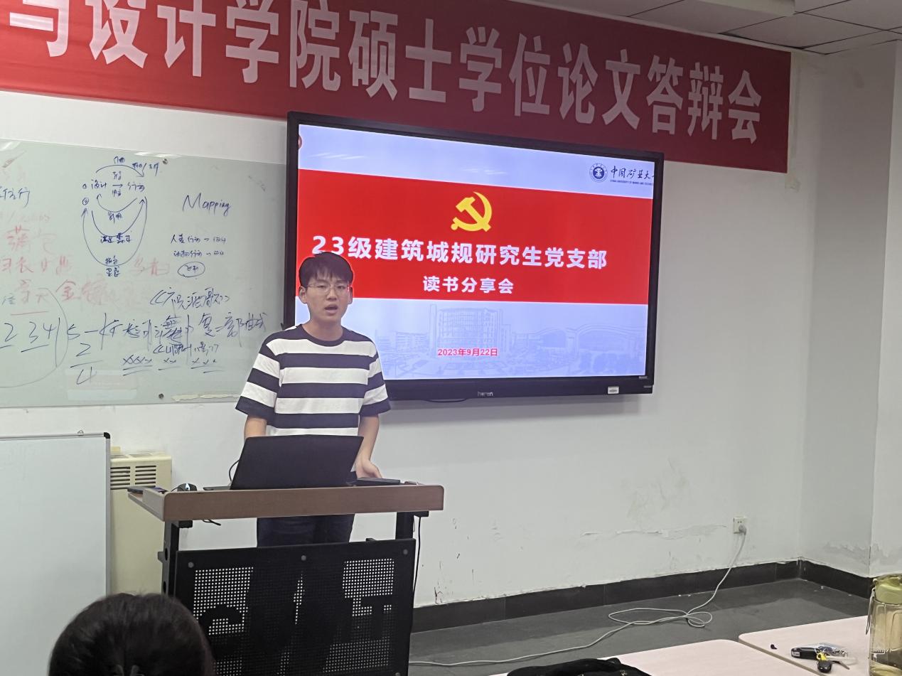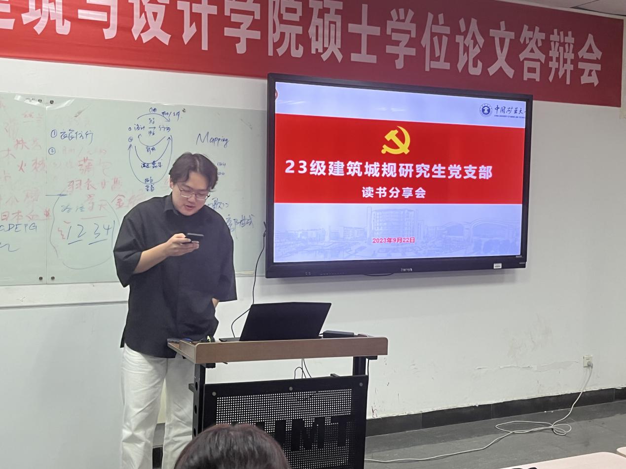 9月22日下午,吉祥坊 2023级建筑城规研究生党支部在A306开展读书分享会活动,支部全体党员参与,活动由支部组织委员方哲哲主持。