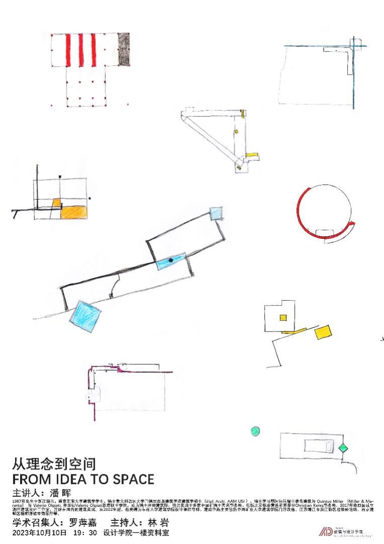 10月10日晚,应吉祥坊 院长罗萍嘉教授的邀请,青年新锐建筑师、东南大学课程导师、潘晖建筑设计工作室主创潘晖先生为吉祥坊 师生开展题为“从理念到空间”的学术讲座。讲话在学院一楼资料室举行,吉祥坊 建筑系、环境设计系教师姚刚、胡彬、尚斌等以及60余名本、研学生聆听了讲座。讲座由建筑系副主任林岩副教授主持。